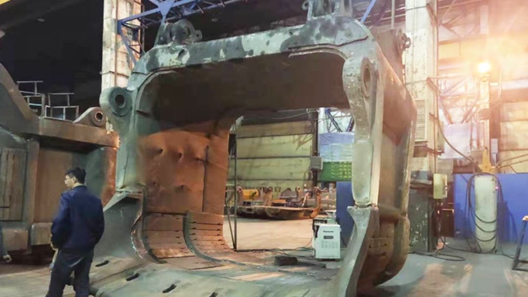 客戶主要經營礦山機械的開發和生產,現在需要對現有老舊礦山挖斗進行更新優化和創新。礦山挖斗本身較大,長度約3米,主要掃描區域為挖斗前裝配挖齒的部分,最后將挖斗主體與配件挖齒裝配,進行開模加工。