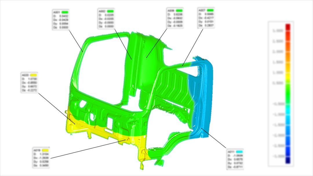 與CAD數(shù)據(jù)進(jìn)行比對(duì),生成偏差圖,用不同顏色直觀表達(dá)了車身與CAD數(shù)據(jù)之間的偏差趨勢(shì)。