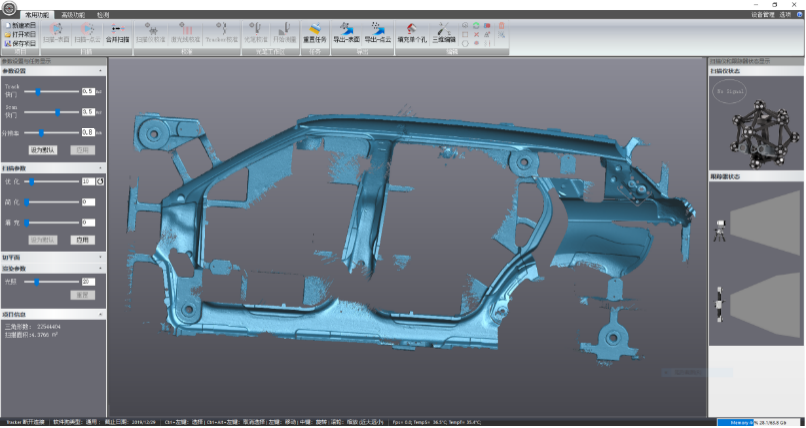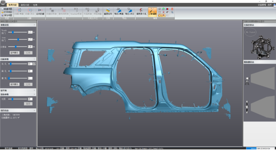>研發實力:消除常見智能光學追蹤3D掃描儀多角度掃描拼接不上的問題,累積掃描精度極高,單機可完成4米以上工件掃描,數據無臺階、變形、條紋等,適用多種工件要求。