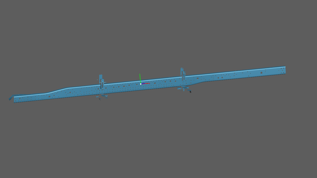 客戶此次需要檢測的車架縱梁長度為7m,板料厚度為12mm,需要測量安裝孔的位置及大小,模擬安裝時兩端變形量。