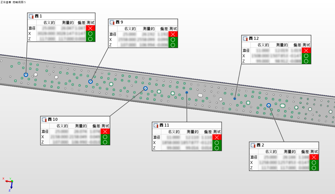 2、使用AtlaScan的測孔功能提取車架上的安裝孔位,測孔過程如下